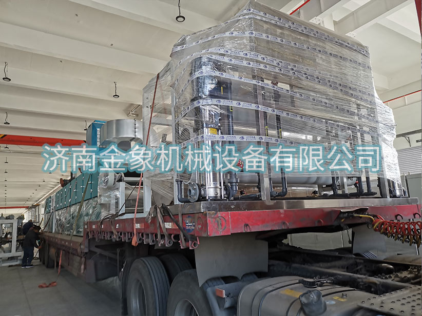 12月16日,金象機(jī)械車間區(qū)又是一派忙碌的景象,又一套熔噴布水駐極設(shè)備發(fā)貨了,此次是發(fā)往廣西客戶處,以下是發(fā)貨現(xiàn)場(chǎng):